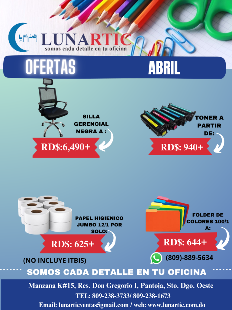 DISTRIBUIDORES DE ARTÍCULOS DE OFICINAS: MATERIAL GASTABLES, TECNOLOGÍA, SELLOS, MOBILIARIOS, HIGIENE Y LIMPIEZA.PRIORIDAD EN LAS ENTREGAS